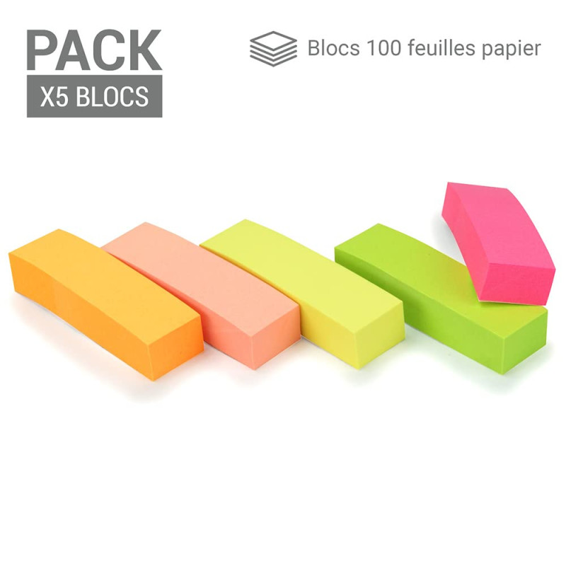 Pachet de 5 mini blocuri a câte 100 de coli, dimensiune 50 mm x 15 mm. Ideal pentru notițe, corecții, mici mementouri pe marginea ecranului sau pe birou.