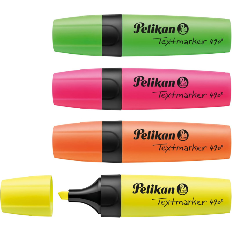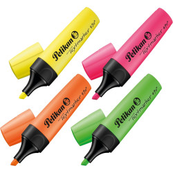 Capac de fixare cu design excelent, cu răsucire, pentru deschidere ușoară. Vârf special pentru marcare în 3 lățimi. Șanțuri de prindere pentru marcare confortabilă. Cerneala universală pe bază de apă garantează o luminozitate uniformă pe aproape toate tipurile de hârtie. Fluorescență ridicată și transparență bună, evidențiază marcajul clar vizibil. Randament ridicat datorită stocului mare de culori. Curgere optimă a cernelii prin fitilul din fibră. Disponibil în 4 culori. Conținutul cutiei: Galben luminos, roz luminos, verde luminos, portocaliu luminos